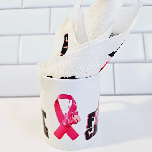 "Fight Cancer" Awareness Mug with Matching Towel – Pink Boxing Gloves Cancer Support Gift Set